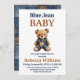 Celebrate the arrival of a little cowboy with this Blue Jean Baby Shower Invitation! This charming design features a patchwork denim teddy bear, perfect for a rustic or western-themed baby shower. The classic blue jean aesthetic adds a trendy and gender-neutral touch, making it ideal for celebrating a baby boy. Customize the details effortlessly to create the perfect invitation for your special event.