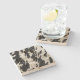 The coasters are gorgeous, a quality feel and heavy weight. They look like a precious archeological find. A rustic stone juxtaposed with a modern floral black and white print. I like the way the print goes slightly imperfect on the cut stone edges giving them a kind-of natural beauty.