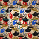 A rustic western fabric features cowboy hats and scarves in earthy tones, scattered across a backdrop of wood textures and rope accents for a classic cowboy vibe. This fun fabric includes cowboy hats, scarves, cowgirl hats, and thoughts of a rodeo.