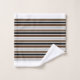 Horse themed bathroom towel set, with the bath towel done in tan with watercolor graphics of wild running horses, on both ends of the towel. The hand towel is done in brown, with white borders and black custom text reading giddy up. The wash cloth is done in stripes of white, grey, tan and brown.