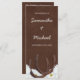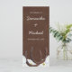 A country themed wedding program featuring a pair of rustic horseshoes and white Gerbera daisies.