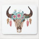 Fabulous leopard print bull skull adorned with flowers and feathers creates a beautiful western design.