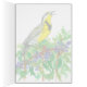 A greeting card featuring the Western Meadowlark singing as he perches on an Oregon Grape bush inspired by the State Bird and State Flower of Oregon drawn with black pen and ink and painted with watercolor.