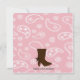 Yee-Haw!!! There's a baby on the way!! Start your celebration off with this adorable baby shower invitation. Great for the cowgirl/western theme. It has a pink with white western print background. There's a black swirling frame with small stars on it. Inside is where you personalise with your party information. The left side has an adorable silhouette of a profile view of a pregnant cowgirl. She's wearing a hat, dress and pink cowboy boots. Check out the other designs and products we offer. ©JW Illustrations