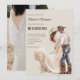 Celebrate your love with this stunning Western ranch wedding invitation, perfect for country and rustic-themed weddings. Featuring a romantic watercolor design of a bride and groom in cowboy hats with earthy tones and a timeless aesthetic, this invitation sets the tone for your big day. Ideal for outdoor weddings, barn celebrations, or rustic ranch venues, this design combines elegance with a touch of the Wild West. Fully customisable, you can easily personalise the details to match your wedding style.