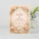 A romantic blush and peach floral design framed by a soft watercolor arch of roses, garden blooms, and airy pampas accents. Warm neutrals and muted sage greenery create an elegant, timeless aesthetic with a subtle western touch from the hat and rope detail. The composition feels refined yet natural — perfect for a boho western celebration, ranch wedding, or romantic garden ceremony. Fully customizable with your names and event details.