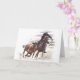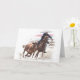 A birthday card with a digital illustration made from a photo of a western rider cutting a calf from the herd in a competition in France.