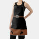 Ready for rodeo. Western black apron with faux print of tooled leather western belt and buckle. Bronc riders silhouettes at the bottom.