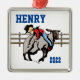 Western Rodeo Cowboy Kid Mutton Buster Christmas Metal Ornament