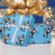 This rustic design featured repeating cowboy on a horse, on a sky blue background.