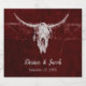Rustic western burgundy bull cow skull western country cowboy rodeo wedding dinner reception sparkling wine bottle labels. Texture farmhouse style design to make your day special. Vintage antique old wild west inspired favour gifts. Cool farm animal design. Personalise your script. Image copyright Marg Seregelyi Photography.