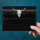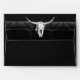 Western country black and white vintage antique cowboy style custom wedding invitation, thank you and greeting card envelopes. Rustic bull cow skull personalised modern vintage antique farmhouse inspired texture design. Old wild west cowboy style party supplies. Cool, awesome unique, trendy, farm animal design. Image copyright Marg Seregelyi Photography.