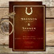 Saddle up for a celebration like no other with our stunning rustic burgundy brown leather-look invitation. Inspired by the rugged charm of the Wild West, this invitation is perfect for couples looking to add a touch of frontier flair to their special day. Each invitation features a real gold foil floating frame and gold foil text, adding a touch of luxury and elegance to your wedding announcement. At the heart of it all, a gleaming gold foil horseshoe centred at the top symbolises luck and prosperity, setting the tone for a lifetime of happiness together. Capture the essence of the Old West and invite your guests to join you on this adventure of love and commitment. Whether you're tying the knot in a barn, on a ranch, or under the open sky, these invitations will set the stage for an unforgettable celebration. Created by Simply Farmhouse Press.