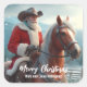 Western Santa Claus Riding a Horse Christmas Square Sticker