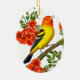 Original fine art painting of a singing Western Tanager by avian artist Carolyn McFann of Two Purring Cats Studio printed on a quality holiday ornament for bird lovers.