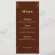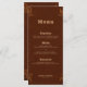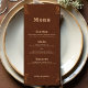 Bring cohesive western charm to your reception tables with this rustic wedding menu, featuring a deep dark copper–terracotta background and a minimal faux tooled floral motif inspired by vintage saddlework. The rich, earthy hue pairs beautifully with country, ranch, and barn wedding décor, while the subtle tooled accents add just the right touch of western elegance without overwhelming the design.