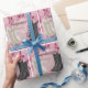 Western Wedding Cowboy Boots for bride and groom with a pink floral border printed on Gift Wrap