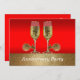 This western themed invitation has champagne glasses with spurs on a red and gold background. The text on front says Anniversary Party, but it can be changed by using the customise button to edit text.