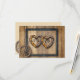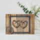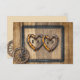 Rustic country wedding barnwood wedding response card with a country western theme. Wood twig, heart shape frames for your names and wagon wheel with silver horse shoe. Invitations and table cards also available.