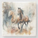 Western wild horse coaster. Beautiful watercolor brown and tan wild horses running in the wilderness.