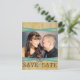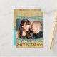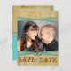 Light wood tones with crossed ribbons adorned with linked horse shoes. Add your photo and customise for the perfect save the date postcard. Top wood chunk and ribbons may be removed to accommodate larger photos.