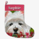 Westie and Pink Flowers Large Christmas Stocking
