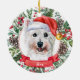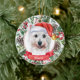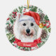 This sophisticated ceramic Christmas ornament features a watercolor of a cute West Highland White Terrier in a Santa hat, surrounded by holiday greenery, pinecones and berries, with a red banner with your pet's name (or change to Merry Christmas). You can fully personalise this design by changing the greeting and year on the back in an elegant font. This is a stylish, yet inexpensive, custom Christmas ornament, and it's perfect for West Highland lovers, Terrier fans, Westie lovers, dog enthusiasts, and pet lovers.
