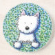 Sandstone coaster featuring west highland white terrier dog breed art by children's book Illustrator, Kim Niles.