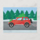 Westie Driving Christmas Car with tree on top Holiday Postcard