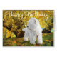 Golden sunlight filters through the autumn leaves! West Highland White Terrier pauses to listen. Does that rustling attest to the presence of rabbits! Oh, for a good chase! All sales support West Highland White Terrier Rescue!