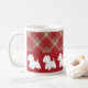 Adorable Westie mug in red plaid design. Enjoy your morning cuppa with your favourite fur friend.