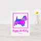 West Highland White Terrier dog silhouette in crazy hot pink and blue bright modern abstract pattern. Funny birthday message inside can be changed to anything you want. Personalize card with name on the front.