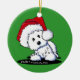 Round ornament with West Highland White Terrier dog breed art by children's book Illustrator, Kim Niles of KiniArt Studios.