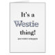 Its a West Highland White Terrier thing and only you understand. Put this "It's a Westie thing, you wouldn't understand" design on a t-shirt, mug, sticker, card, button, poster and more.