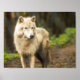 This is a photograph of a beautiful arctic wolf standing behind a fenced area with green forest surroundings in the springtime. This arctic wolf's fur is wet from the recent rain. It is staring intently at something to its right as it stops pacing around for a second. The slight blur of the background gives this photo a dreamy feel. Is this a special gift for someone? You can customise it to have a name, initial or message on it.