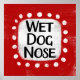 "Wet Dog Nose" is a fun text design with a white accent shape surrounded by white whimsical textured dots.