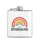 The flask itself is fine. It’s a cheap flask, obviously bought in bulk, however am prepared to overlook that. Given that it is a personalized item, I would have liked to have seen gift boxing instead of the generic packaging. Terrible printing, and/or quality. It’s a cheap, tacky vinyl. It is not cut straight and is also applied in a way that it is overhanging the bottom, causing the glue to catch on items and it will eventually roll and tear, damaging the wrap.