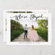 Elegant and modern wedding announcement 2-sided card featuring a hand lettered script that says "We've Eloped" on top of your photo. This card has 3 photos on total.