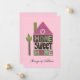 This colorful moving announcement features whimsical pink and green Home Sweet Home text that is playful and cute. A fun way to let friends and family know that you have moved to a new home!