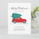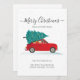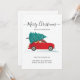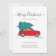 We've Moved Moving Announcement featuring a red car and Christmas tree with script and popular typography on white background.