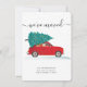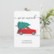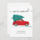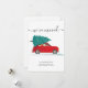 We've Moved Christmas Holiday Moving Announcement featuring a red car and Christmas tree with script and popular typography on white background.