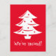 Change of address postcards with decorated Christmas tree and red background colour. Xmas moving postcards with fun typography template design. Custom move text; We have moved! We've moved! Add your new address of your house on the back. Simple winter Holiday moving cards for new home, housewarming party or business location.