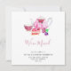 "We've Moved" moving announcement or new address card, featuring hand-painted pink watercolor tea set. Designed and illustrated by independent designer Kristine Lee. For more, visit our website at www.kristineleedesigns.com