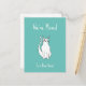 We've Moved Cute Winking Cat Trendy Teal Green Announcement Postcard