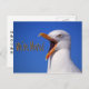 What is this Seagull squawking about? He says that we have moved... go! get the attention of your friends and family with this friendly seagull moving card. Sky Blue background.
