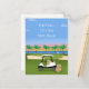 This classic golf cart sits on a sunny coastal course with palm trees swaying in the breeze, loaded high with moving boxes. A fun and stylish way to share your move, this cheerful design is sure to bring a smile to friends, family, and fellow golf lovers when they receive your postcard.