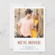 Custom photo moving announcement card with minimalist styling and trendy colour palette of burnt orange clay and deep blue. The headline title in modern oversized typography simply reads "we've moved", which you can edit to read "I've moved" if required. The photo template is set up for you to add your own photo, which is displayed in square / instagram format. You can further personalise with your name(s) and new address. A simple, modern minimal design to let your friends, colleagues and family know where you have moved to.