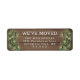 Add a stylish finishing touch to holiday moving announcement envelopes with custom We've Moved / I've Moved return address labels. All wording is simple to personalise. The modern farmhouse style design features a rustic brown faux wood background, festive watercolor pine greenery with string lights, and modern minimalist typewriter style typography. These labels are an elegant way to introduce family and friends to your new home and a make stylish mailing accessory for Christmas change of address cards and housewarming invitations.