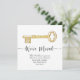 Let your friends and family know your new address with this rustic key announcement postcard. This template features a gold coloured vintage inspired key. Fully customisable text, very simple to edit with your personal details.