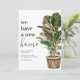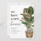 Modern moving announcement card featuring a simple white background, a rustic hand painted watercolor houseplant, the saying 'we have a new home', and your new address.
